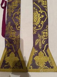 Antica Pianeta sacerdotale Viola Damascata Con Stola abbinata. Condizioni buone. Come si evince dall’ultima foto una macchia sul fronte.