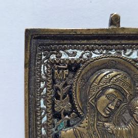 Piccola e Antica Icona da Viaggio raffigurante Madonna con Bambino.