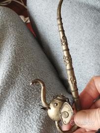 L'oggetto raffigurato è una rara pipa probabilmente da oppio del Sud-est asiatico (Thailandia o Birmania), risalente probabilmente alla metà del XX secolo.