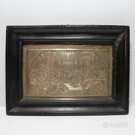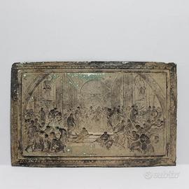 Antica Placchetta in metallo sbalzato Recante Firma di Francesco Putinati (Medaglista) e datata 1825 Raffigurante la scuola di Atene di Raffaello Sanzio.