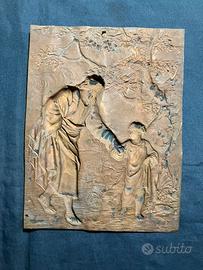 Antica placca in rame sbalzato San Giuseppe e Gesù Bambino cm 19x15