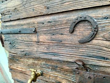 Antica porta da cantina risalente alla fine dell'800, restaurata e preparata per la funzione di puro arredo per uno spazio particolare quale un porticato, un interno privato o commerciale. Le misure della porta sono cm 85 x altezza 185 circa. Con la porta è compreso anche il vecchio vaso in cotto presente in foto. Non spedisco ma posso prendere in considerazione una consegna eseguita direttamente al puro rimborso spese.
