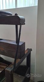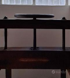 Vendo affascinante pressa da legatoria originale, utilizzata per la pressatura di libri e documenti, databile tra la fine dell’Ottocento e i primi del Novecento (circa 1890–1915). Struttura imponente e autentica, realizzata in legno massello con elementi in ferro, completa di vite centrale e volano superiore funzionante. Si tratta di un attrezzo professionale d’epoca, Dimensioni: Altezza: 160 cm Larghezza: 90 cm Profondità: 62 cm Condizioni: Oggetto originale, mai restaurato, con normali segni del tempo che ne attestano l’autenticità. Strutturalmente solido. Ideale per: collezionisti di antiquariato tecnico arredamento industriale / vintage enoteche, ristoranti, studi creativi allestimenti scenografici