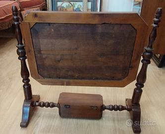 Antica psiche di fine Ottocento da tavolo o comò con specchio basculante originale dell'epoca, con segni di ossidazione comprensibili del tempo, visibili in foto.