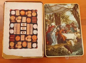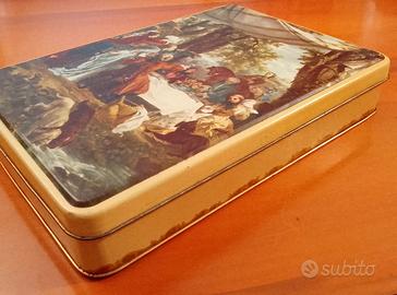 Vendo antica scatola in latta biscotti Lazzaroni, misure: 24,5x35x6,5 cm, condizioni come da foto. Consegna a mano zona Milano.