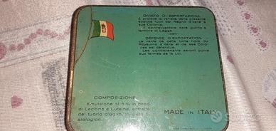 Scatola latta istituto nazionale medico farmacologico Serono risalente al Regno d'Italia.