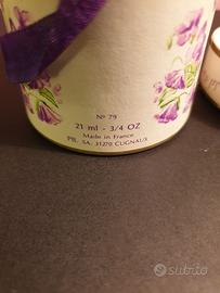 Antica scatola porta profumo Violette de Toulouse Berdoues in cartoncino, Made in France epoca anni 60. La scatola ha diametro 6 cm ed è alta 7 cm. Oggetto in ottime condizioni come foto