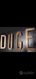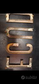 Vendo vecchia scritta in bronzo composta da 4 distinte lettere alte circa 23 cm. originariamente fissate su un muro o su una lastra, ( dietro sono visibili i residui di gesso ).