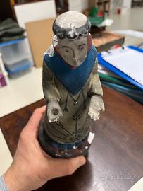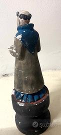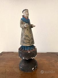 Antica scultura in legno intagliato raffigurante una figura di monaco frate o santo ( " Santos " ? Sant'Antonio? )