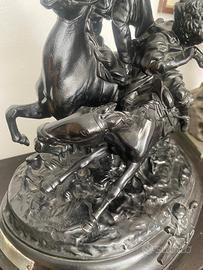 Antica scultura Russia 1880, Aleksandrowicz LANSERE (Eugene LANCERAY) 1848 Morszansk - 1886,raffigurante 2 cosacchi a cavallo,in ghisa e carbonio nera opaca,con marchio della fonderia sotto la base,bellissima da museo,purtroppo manca un pezzo nella parte superiore ,la richiesta ne tiene conto,anche se la quotazione attuale si aggira tra i10.000/12.000 euro.altezza 52cm,abbastanza pesante,oggetto visibile Solo al museo, Consegno a Lodi presso il mio orefice di fiducia previo appuntamento,oppure posso spedire con modalità da concordare spese escluse,1 euro è simbolico. Nota bene: per l'acquisto e spedizione non utilizzo TuttoSubito, ma gestisco tutto autonomamente,massima serietà.solo contatti telefonici,oppure anche in watzapp per definire i dettagli. Massima serietà,astenersi perditempo.
