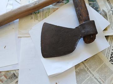 antica scure con manico in legno originale caratteristica della scure è la gobba superiore per