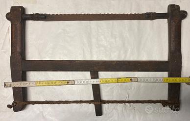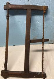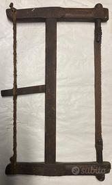 Antica sega a telaio per taglio a mano anni 30/40, ancora in buone condizioni con lama ossidata, da esposizione e collezione