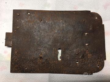 Antica serratura completamente in metallo. Misure 28 x 20 cm. Senza chiave.