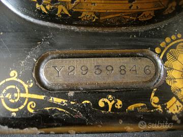 Cedo centenaria macchina da cucire SINGER matricola Y 2939846 che la identifica come prodotta nel 1925 .La macchina si presenta funzionante e ancora in ottime condizioni , anche se qualche segno il tempo e l'uso lo hanno lasciato ( vedi cromature o decals ) ; é dotata di motore elettrico di conversione ( asportabile se non gradito ) applicato negli anni sessanta ; a corredo sono forniti gli accessori tradizio