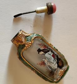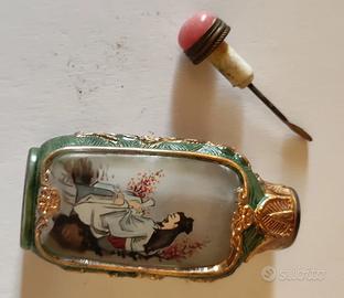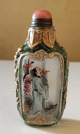 Antica snuff bottle cinese 1900 - vetro dipinto a