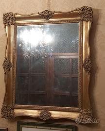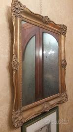 Specchiera d'epoca con cornice dorata a foglia e specchio originale.