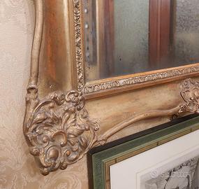 Decorazioni di gusto francese a rocaille, ma sobrie e raffinate che ne fanno un complemento d'arredo versatile, ambientale in qualunque contesto, sia d'epoca, sia classico, sia moderno.