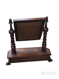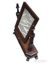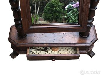 alla base è presente un cassettino e lo specchio ruota ed è sorretto da due colonne tornite
