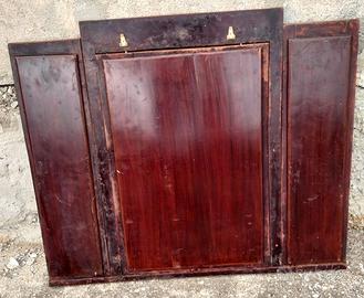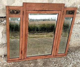 Antica specchiera in legno massello, risale a cento anni fa', finita a cera d'api, misura cm 88 x h 75. E' formata da tre elementi con relativi specchi molati autentici dell'epoca. Non spedisco per ovvie ragioni ma posso valutare la possibilità di una consegna al puro rimborso spese.