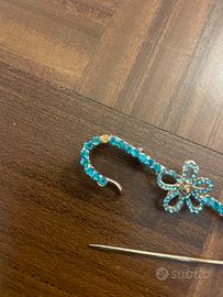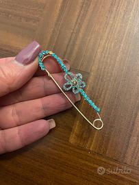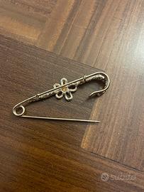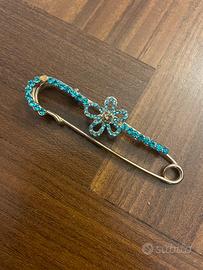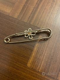 Antica spilla da balia vintahe, perfettamente conservata eccetto un brillantino mancante come visibile in ultima foto.
