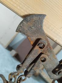 Vendesi antica bilancia a stadera d’epoca, pezzo autentico in ferro battuto con piatto circolare sospeso e contrappeso originale ("romano"). Dettagli: Struttura integra con patina del tempo, completa di catene e gancio superiore. Presenta incisioni di verifica sulla testata (visibili in foto). Utilizzo: Splendido oggetto d'arredo per casali, cucine rustiche, negozi o per collezionisti di oggettistica vintage/antiquariato. Condizioni: Stato originale, ottima base per un restauro conservativo o da esporre così com'è per un look industrial/rustico.