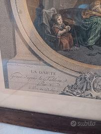 Antica stampa con cornice in legno e bronzo ,non conosco il periodo preciso in cui è stata realizzata, no spedizione