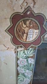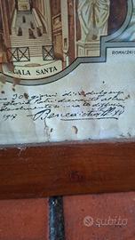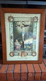 Antica Stampa Di Gesù Cristo Croce Autografo Di Papa Benedetto XV Per Indulgenza Rara Antica Stampa Di Gesù Cristo Croce con Autografo Di Papa Benedetto XV Per Indulgenza datato 4 giugno 1917. Papa Benedetto XV. ISRI - Trascrizione CONCEDIAMO 300 GIORNI DI INDULGENZA A CHI RECITA: TRE GLORIA PATRI DAVANTI AL CROCIFISSO DI CUI LODEVOLMENTE SI CURA LA DIFFUSIONE. 4 GIUGNO 1917 BENEDICTUS P.P. XV Notizie storico-critiche Come si legge dalla nota manoscritta di Papa Benedetto XV quest'immagine sacra doveva essere divulgata in tutti i luoghi di culto. Qui Venivano concessi 300 giorni di indulgenza a chi recitava tre Gloria Patri davanti a questo crocifisso . L'anno 1917 fu un anno cruciale per gli sviluppi della prima guerra mondiale, principalmente per tre motivi: l'entrata in guerra degli Stati Uniti, l'uscita dalla stessa della Russia e la disfatta di Caporetto sul fronte italiano. L'antica stampa destinata alle sole chiese è conservata attualmente in una semplice cornice moderna in materiale sintetico come da foto. La stampa antica. Si tratta di una stampa a colori rappresentante la crocifissione di Gesù Cristo. Periodo XX secolo dal 1900 al 1917 misure: 42x56,5 cm Stampatore Marzi Roma Stato di conservazione discreto con alcune lesione tagli /lesioni/mancanze /restauro del foglio poco influenti se visti da lontano ma ben visibili ed evidenziati dettagliatamente nelle foto finali. Indicazioni del soggetto Personaggi: Cristo; Isaia. Oggetti: statua; chiavi; mitria. Simboli: (San Giovanni) aquila; (San Luca) toro alato; (San Marco) leone; (San Matteo) angelo. Architetture: Roma: Basilica di San Pietro; Scala, Santa. Abbigliamento. Simboli: teschio. Documento sacro.