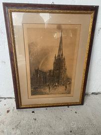 Antica stampa St.MARY REDCLIFFE CHURCH BRISTOL,grandi dimensioni cm.103 x cm.78,bellissima cornice in legno e descrizione al retfro.