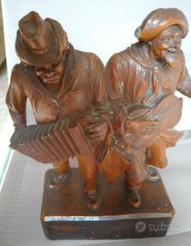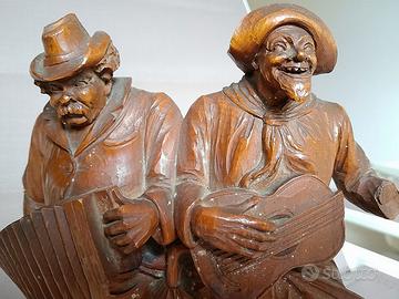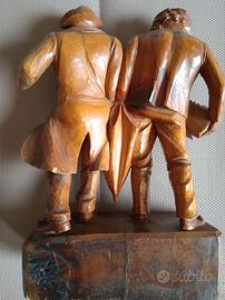 Meravigliosa statua da tavolo, scolpita da artigiano della Val Gardena, anni 1910-1920, raffigurante due allegri ubriachi. La capacità di rappresentazione del grottesco popolare, rendono questi oggetti meravigliosi per collezionismo e molto divertenti. Misure: 17 x 9 x h.28 cm Le foto rappresentano il bene così come venduto. In caso di spedizione, piccola spesa di spedizione a carico dell’acquirente.