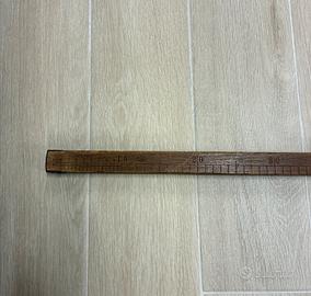 Antica stecca da sarto in legno marcata F.I.M.L. lunga 1 metro. Presenti anche svariati timbri a secco di legge. Ottime condizioni.