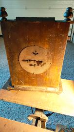 Sveglia in legno da sistemare. Condizioni generali buone, legno sano la cimasa è da incollare e riverniciare il tutto.
