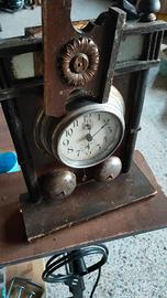 L'orologio avanza per poco e si ferma, da revisionare pulire. La suoneria funziona. Nel retro la carica del meccanismo orologio non ha il perno.