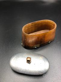 In vendita antica tabacchiera, realizzata in corno, legno e latta, oggetto autentico d’epoca dal fascino senza tempo.