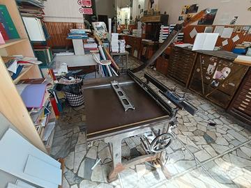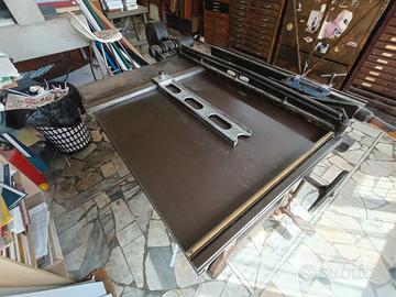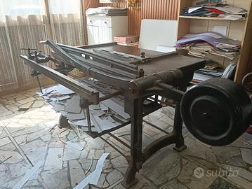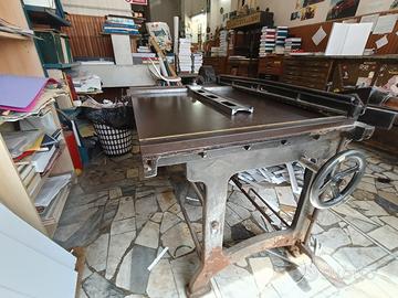Antica taglia cartoni del 1890 circa. Perfettamente funzionante, per legatorie di libri. Oggetto raro, ideale per collezionisti o musei di antiquariato. Misure: Profondità piano di lavoro: 115 cm. Profondità braccio con lama: 196 cm. Larghezza piano di lavoro chiuso: 82 cm. Larghezza piano di lavoro aperto: 131 cm. Altezza da terra massima: 88 cm. È possibile previo appuntamento presso la zona di Villa Gordiani, Roma. Euro 1000,00 Chiamare o mandare messaggio al 3460321453