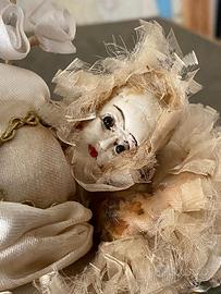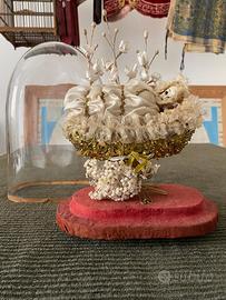 Antico oggetto votivo che rappresenta Maria bambina realizzata in cera con decorazioni di tessuti pregiati e fili dorati. Tipica produzione delle suore di clausura alt cm. 30 lunghezza cm. 20 profondita cm. 12. Per altri oggetti visitare la mia area riservata