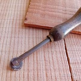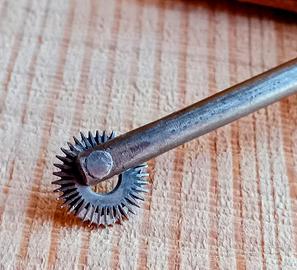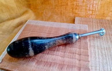 Antica tracciatrice.,rotella segna punti con manico in legno per lavori di cucito, pelle e simili. . Condizioni vintage più che buone.
