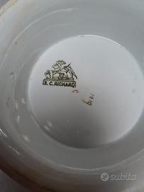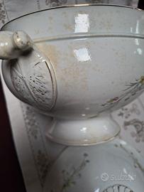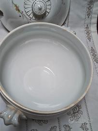 ANTICA. ZUPPIERA IN CERAMICA BIANCA CON DECORAZIONE FLOREALE, LA MACCHIA CHE SI VEDE È UNA MANCANZA DI SMALTO , ( DIFETTO DI FABBRICA ) E PICCOLA SCHEGGIATURA ALL'INTERNO DEL POMOLO DEL COPERCHIO , COME DA FOTO , (MARCHIO DI. RICHARD). EURO 90 EVENTUALE SPEDIZIONE+11 EURO FORMULA VISTO E PIACIUTO NO RESI SI ACCETTA SOLO PAGAMENTO IN CONTRASSEGNO E SOLO FRA INTERESSATI . ASTENERSI PERDITEMPO GRAZIE.