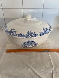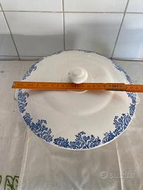 Vendo antica zuppiera in porcellana, inizio '900, marca White Stone, bianca con disegni blu, nei bordi qualche inevitabile segno del tempo ( ha piu' di un secolo) ma che garantiscono l'autenticita' e l'anzianita' del prodotto. Ideale come centro tavola, sara' ammirata e commentata positivamente dai vostri graditi ospiti. Consegno a Genova, disponibile a spedire con costi a carico del destinatario