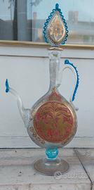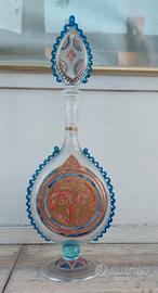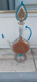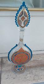 Antiche bottiglie in vetro di murano fatte e decorate a mano di notevole fattura e belle dimensioni..alte: una cm.42 altra cm. 40.5 larghe: una cm.18 altra cm. 15 perfettamente conservate senza difetti o sbeccature..!!!