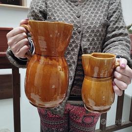 Coppia di antiche brocche pugliesi in terracotta destinata al contenimento dell’acqua o del vino a tavola.