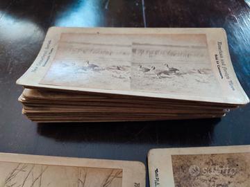 set formato da 34 antiche cartoline per stereoscopio, alcune in buono stato altre danneggiate dal tempo (new educational series stereoscopic views, American and foreign views)