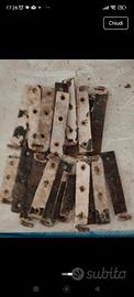 € 3 cadauno. Vecchie cerniere / bandelle in ferro (probabilmente per porte, portelloni o finestre), con gancio piegato e fori per viti/chiodi. Sono d’epoca, molto ossidate, con residui di intonaco o vernice, quindi ideali per restauro, recupero creativo o arredo industriale/rustico. cerniere/bandelle in ferro vintage – recupero e restauro Vecchie cerniere/bandelle in ferro originali, provenienti da vecchi infissi o porte. Presentano patina del tempo, ruggine e residui di intonaco, che ne testimoniano l’autenticità e il fascino vintage. Perfette per: restauro di porte o finestre d’epoca progetti di recupero creativo arredamento industriale / rustico / shabby scenografie o oggetti decorativi Condizioni: Usate, non restaurate, vendute così come da foto. Alcune più ossidate di altre. Materiale: ferro Quantità: lotto come da foto