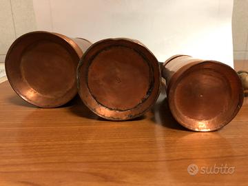 Antiche Cioccolatiere in rame XIX secolo. Vendo 3 antichecioccolatiere Lombarde in rame del XIX secolo in ottime condizioni. Piccola 14 cm Media 19 cm Grande 21cm