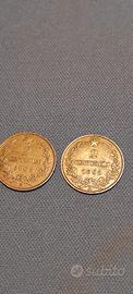 n.2 antiche monete italiane: Vittorio Emanuele III Re d'Italia- 2 centesimi - 1908 - rame; Umberto I Re d'Italia - 2 centesimi- 1898 - rame.
