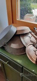 vendo pentole,tegami,secchi,mestoli an tichi di rame( come da foto) sia l'intera collezione che singoli pezzi.Se interessati all'intero lotto posso spedire in più colli o ritiro a mano zona Pordenone e limitrofi