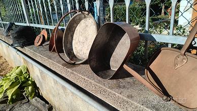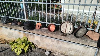 Sei pentole di diverso tipo, due coperchi in rame. Un braciere da scaldaletto. tutto come in foto, vendo in blocco a 200 euro, per i singoli pezzi si stabilisce il prezzo. Ritiro a Bobbio (PC) o su accordo a Milano zona Bande Nere.