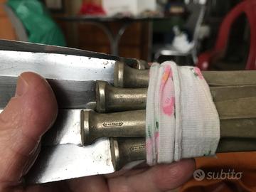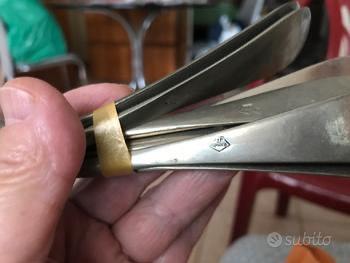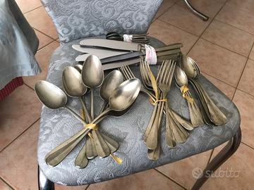 Servizio posate antiche, 48 pezzi grandi e funzionali, in alpacca argentato, con vari punzoni. Peso totale 2100g. Ottime condizioni. Vendo 1 euro al pezzo.