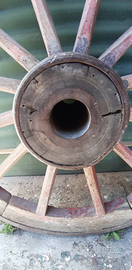 2 ruote da carro per buoi solo da collezione o arredo rustico con vari difetti del tempo una diversa dall'altra diametro 110 e diam 100 naturalmente visionabili senza impegno a poggio berni .telefonare .