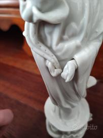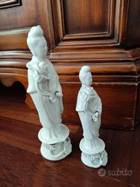 In condizioni perfette. Integre. Antica coppia di statuine in fine porcellana bianca Blanc de Chine prodotte in Giappone. Rappresentano la dea della misericordia e della compassione venerata dalla religione buddista. Ogni dea ha una mano che si sfila per poi metterla in posizione porta fortuna. Molto rare e da collezione.