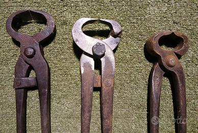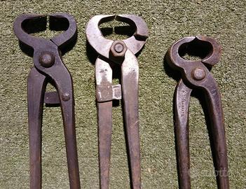 SetvAntiche tenaglie da fabbro o maniscalco grandi da 35 a 40 cm forgiate a mano con marchio.